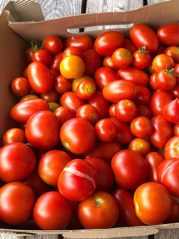 急な雷雨の予報があったので、庭のトマトを収穫してみたら意外にもたくさん採れた。