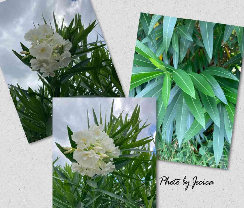 目指せ!自慢の庭さんのお出かけ先,白い夾竹桃の花,夾竹桃の葉の投稿画像