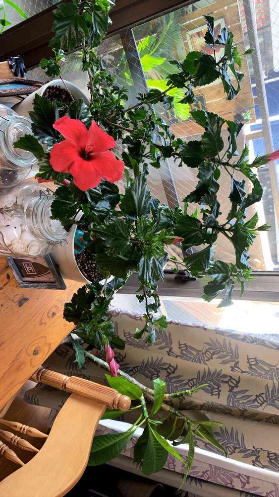 #ハイビスカス#ハイビスカスサマーブリーズ#プルメリア#窓際#開花