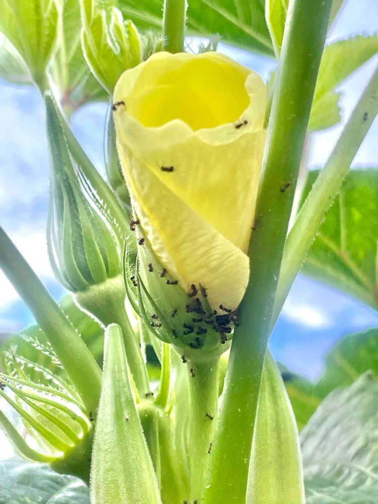 逆に他の虫がつきにくくなるしオクラの受粉も助けてくれるから良い関係みたいですよ‼︎