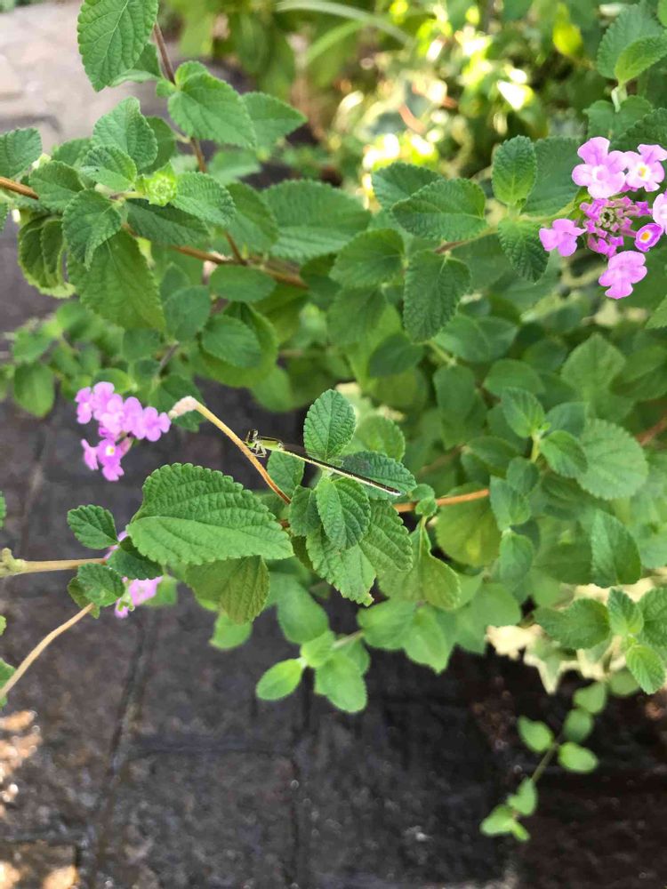 今日はコバノランタナに来るお客さま。糸トンボ。毎年我が家に訪れます。小さくて、涼しげな姿に癒されてます。
