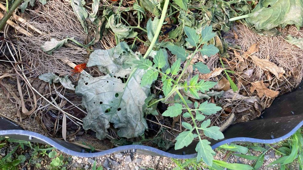 コンポストに廃棄したトマトの脇芽が自力で育ってた🍅