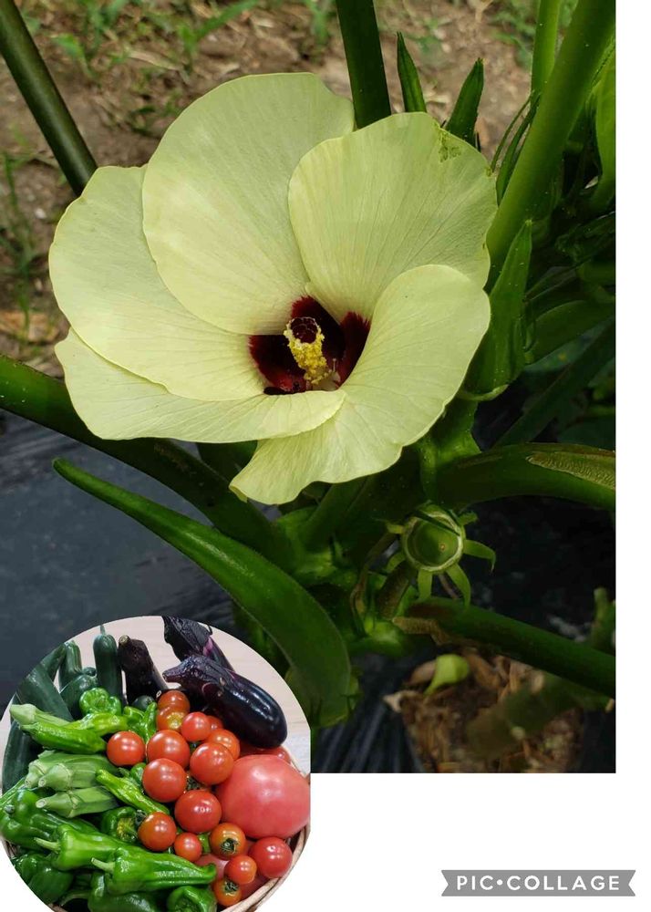 わぁ!オクラのお花、かわいいですねー!夏野菜、みんな、おいしそ〜!トマト🍅も、、おいしそう!うちの、トマトみんな、割れてしまってます!😂😂