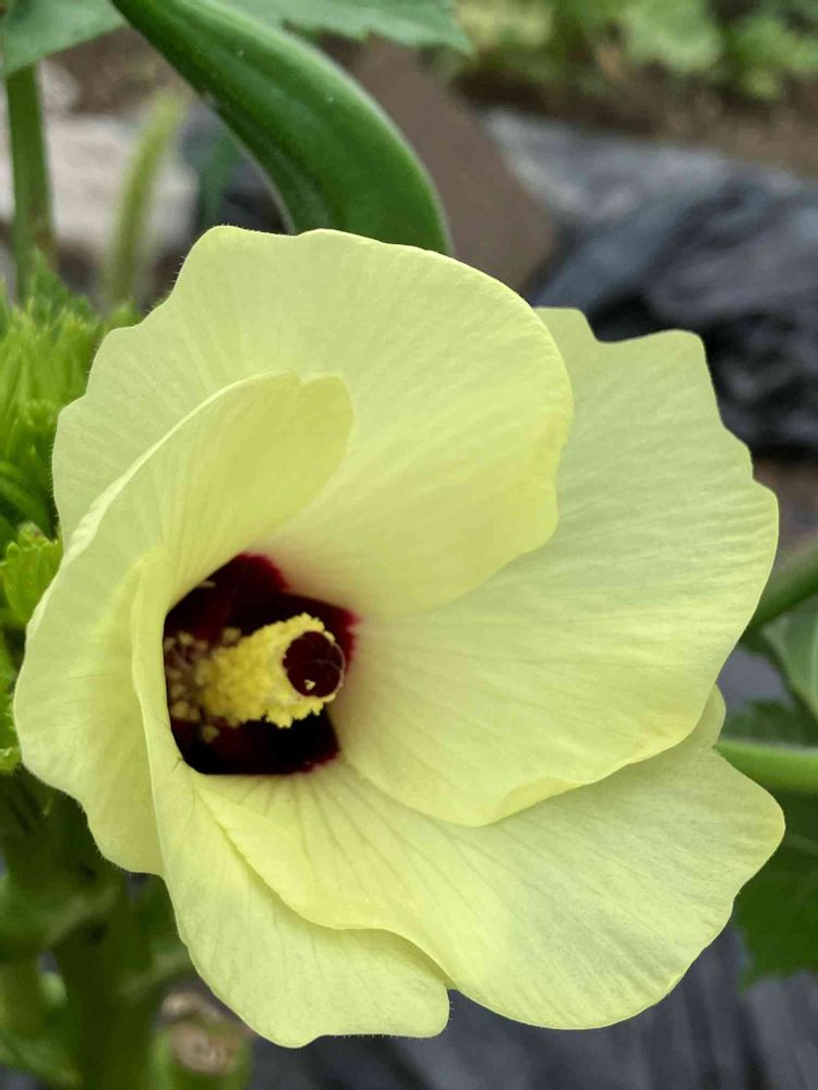 オクラの花いつ見ても綺麗ですよね😃🌼も実も大好き💕です😋