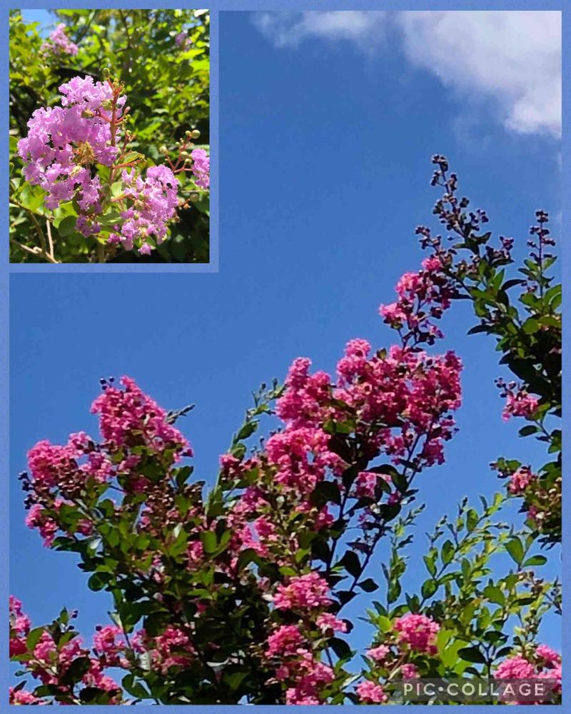 青空に百日紅のピンクが映えてます🌸🌸🌸
