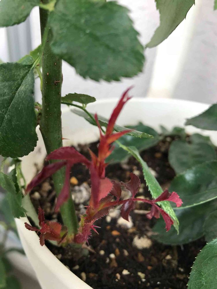 挿し木したヨハネパウロ2世さんだと思う蕾も付いてる新芽も出て来た秋まで大事に育てよう。