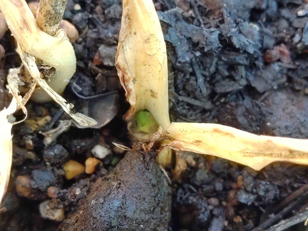 地上部は枯れるだろうと思ってはいましたが、根元から緑の🌱が見えました。