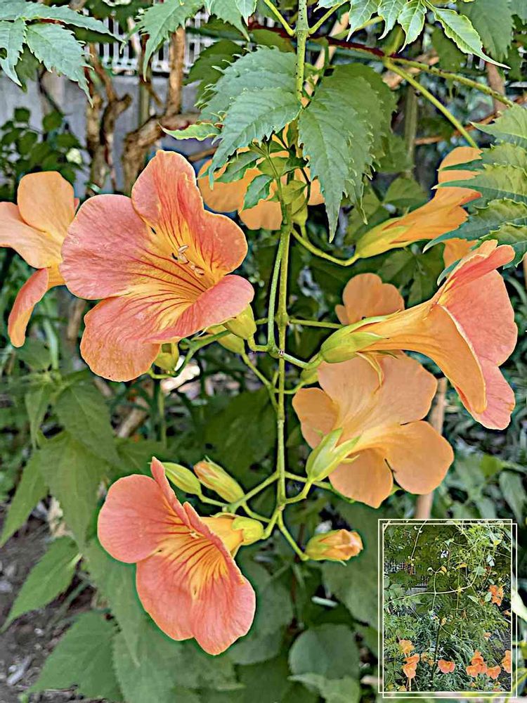 カタバミさんのお出かけ先,ノウゼンカズラ(凌霄花),/美しく次々と咲く黄橙花、一輪一輪はなぜか短命という/の投稿画像