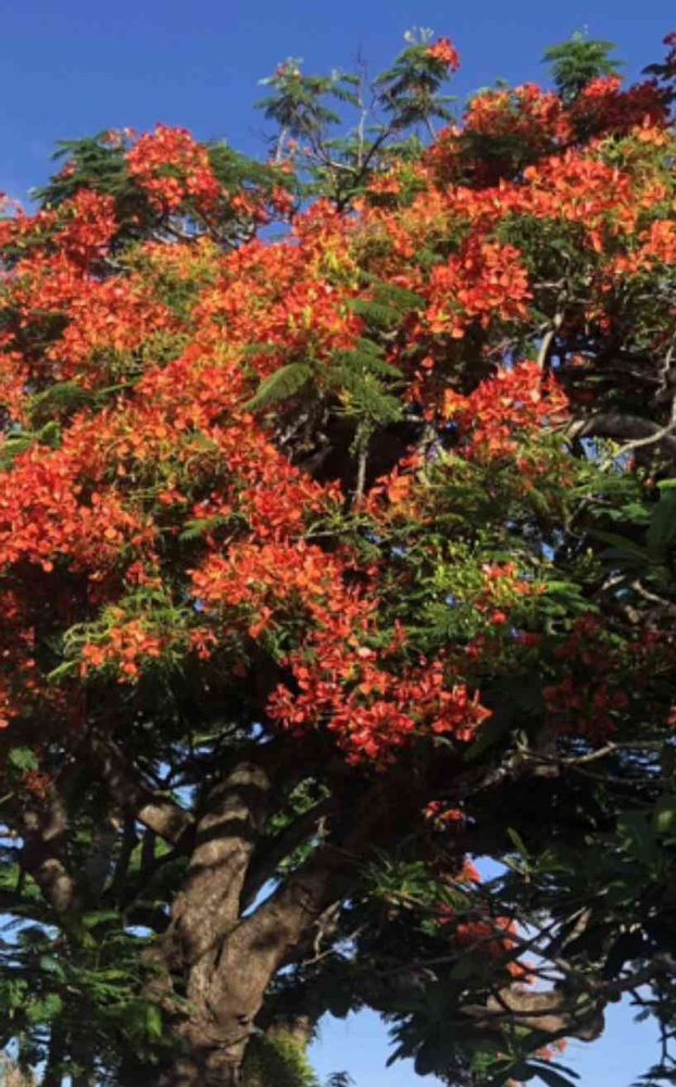 この暑さに負けない様な、大木に燃える様に咲く鳳凰木、見事ですよね🔥🌳🔥❤️