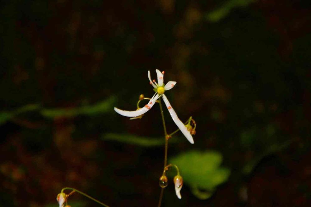 多分ダイモンジソウ。同じくユキノシタ科のジンジソウにも見えなくないが…日光がほとんど当たらない薄暗い渓谷に自生していました。