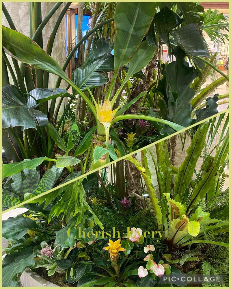 横浜SOGO入り口に観葉植物の寄せ植えかダイナミックに植えられていました。