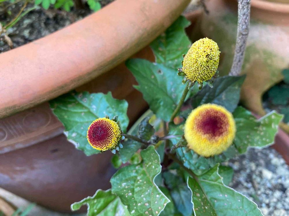 ヘレニウムオータムロリポップだと思うのですが、鉢植えだから背が低いの⁉️😁