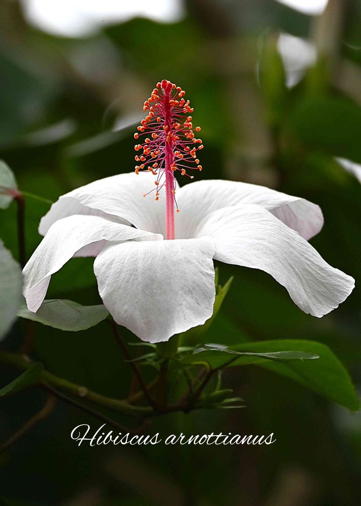 オアフ島の山地に自生し、白い花に、赤い花柱のコントラストが綺麗です。