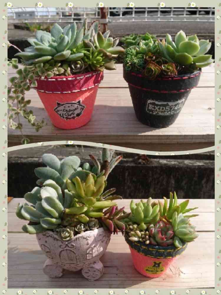 上段は鉢を見て気に入ってくれた職場の女の子の依頼品で、ついでに寄せ植えして欲しいと✨
