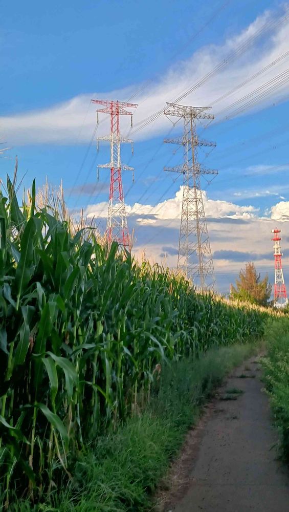 昨日の散歩で撮った🌽トウモロコシ畑、花穂が輝いてました。🌟🌟