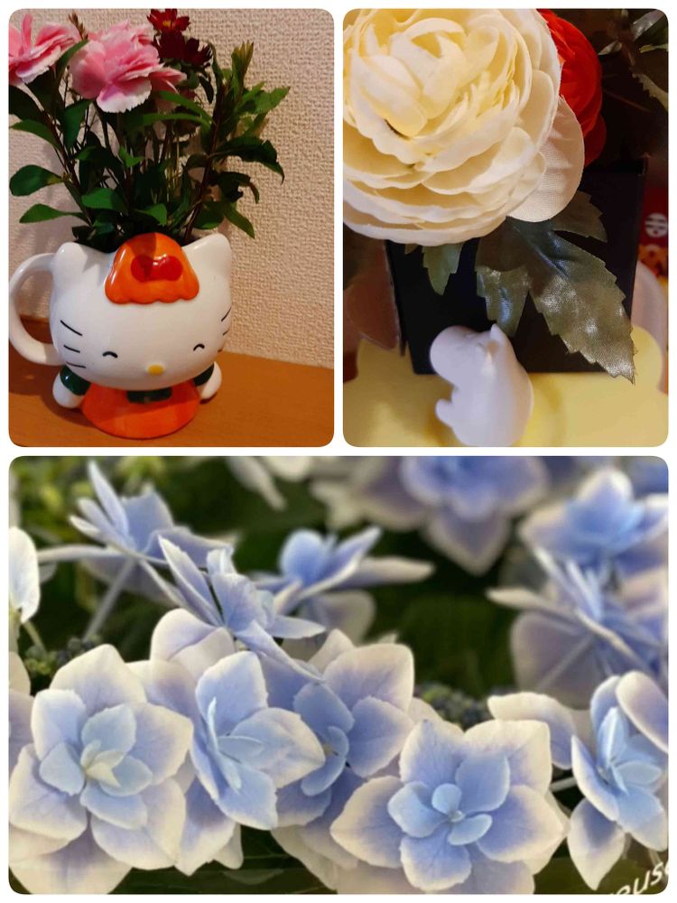 ムーミンも。キティちゃんもお花を飾り🌸🌼いいね!