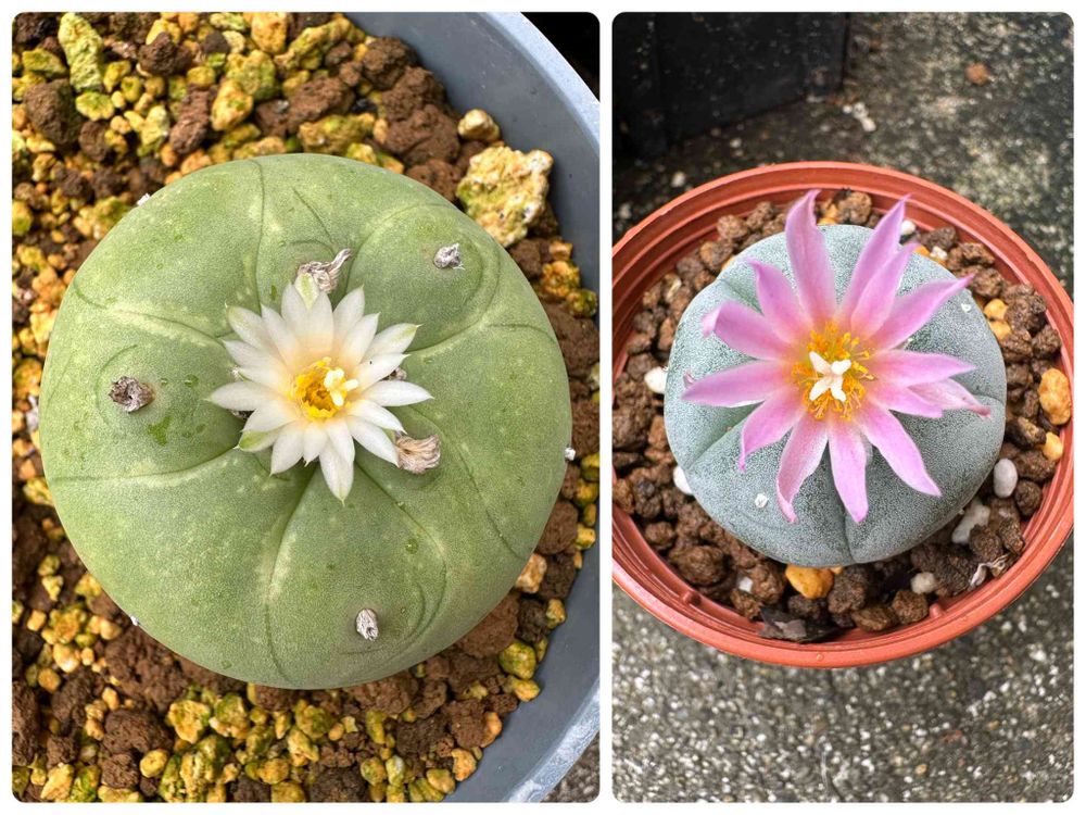 昨日咲いた銀冠玉と、今日新たに翠冠玉が咲きました🙌