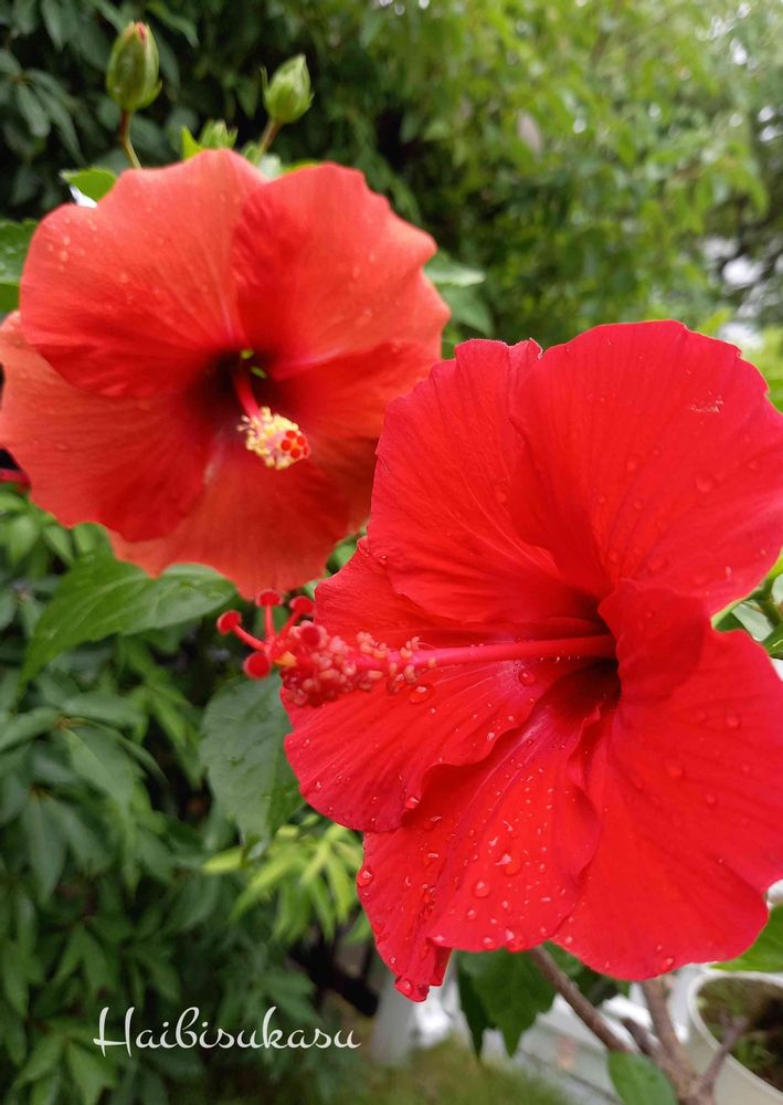 真っ赤なハイビスカス🌺𓈒𓏸次から次へと咲いてくれてます