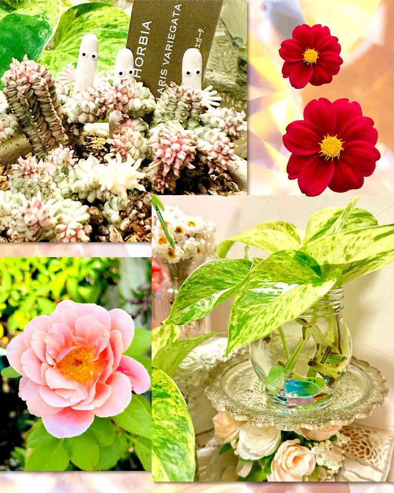 おトイレに座ると頭の上に乗っかるくらい伸びたので、切って小瓶に刺しまくってます🍀🤣