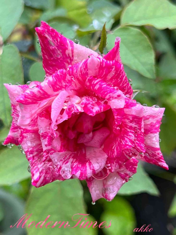 我が家の庭で、雨の中でも咲いてるモダンタイムスです