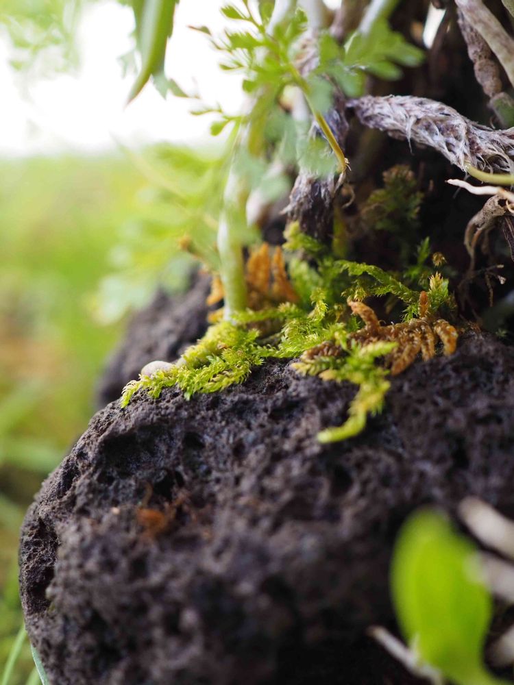奄美風蘭の軽石に一緒に仲良く苔生えてるんですね💚