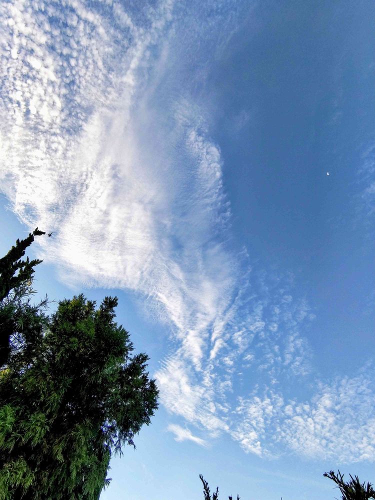 朝の空に舞う雲☁と、静かに佇む下弦の月🌓