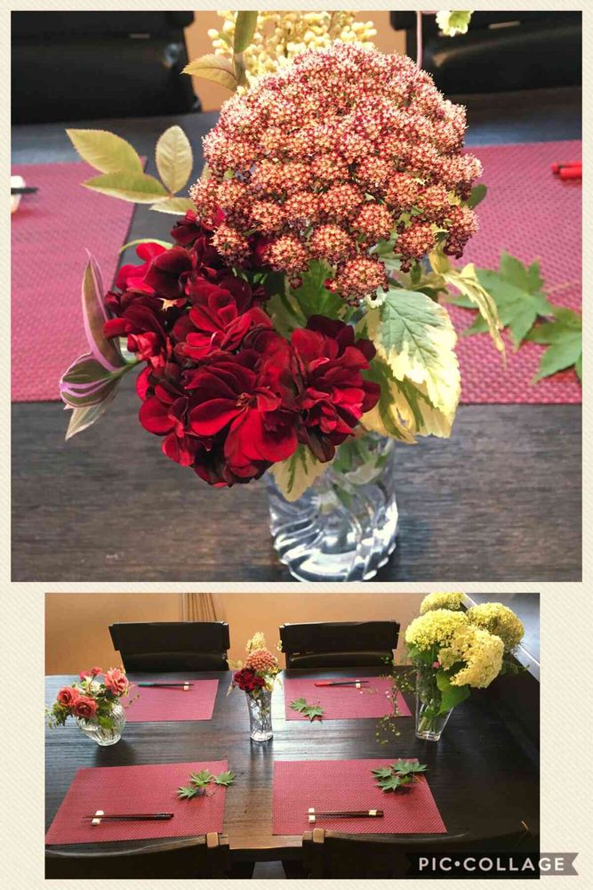 今日は出かけたりしていて、父の日ですがおかずが寂しいので、モミジの葉を置いてみました^ ^