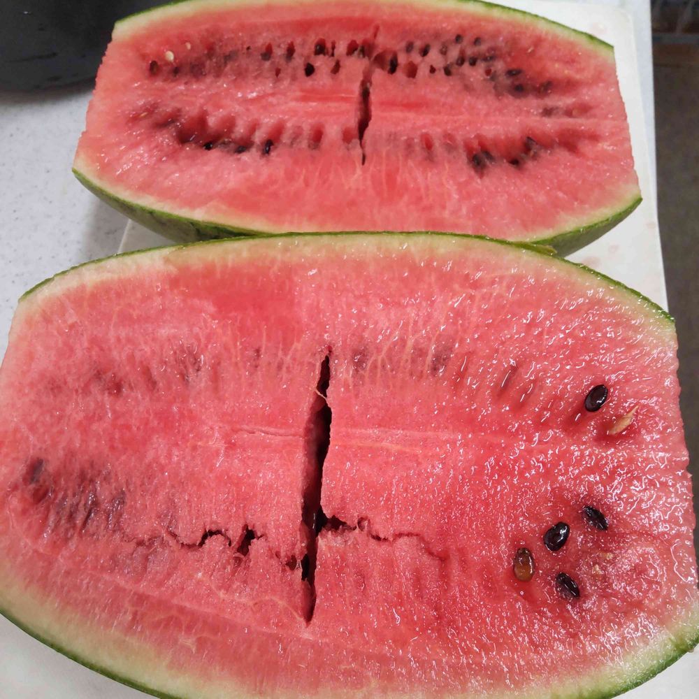それでも自分で育てた🍉は、みずみずしくって最高に美味しいです。食べやすい大きさにカットして、冷蔵庫でヒンヤリと。汗をかくこの季節、いつでも食べられるようにしてます😊
