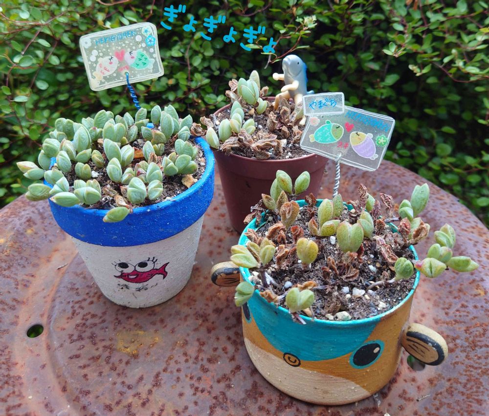 パンダちゃんに貰ったハコフグ🐡リメ缶にトト様植えたら即溶けたよ💦🤣🤣