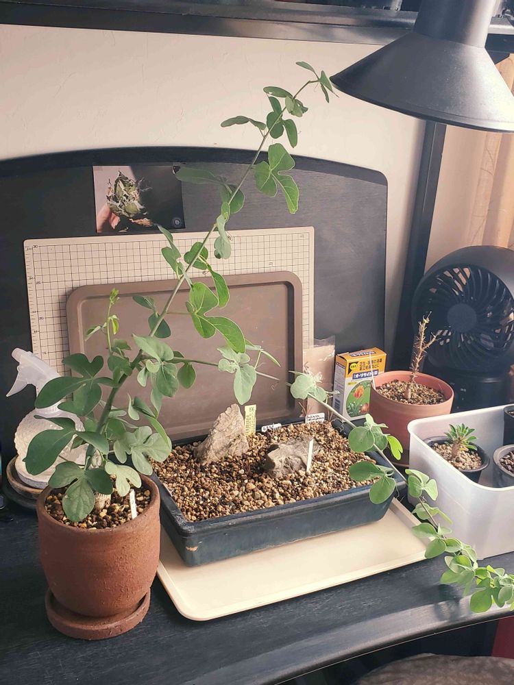アデニアがシワシワになり、土が乾いてダメージ受けそうなので、しばらく室内に。