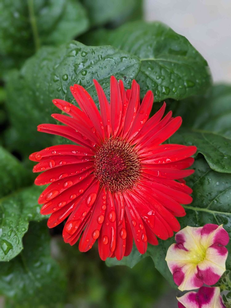 濡れてるからか赤いお花が凄く綺麗に撮れてるね🌼 鮮やかだわ❤️