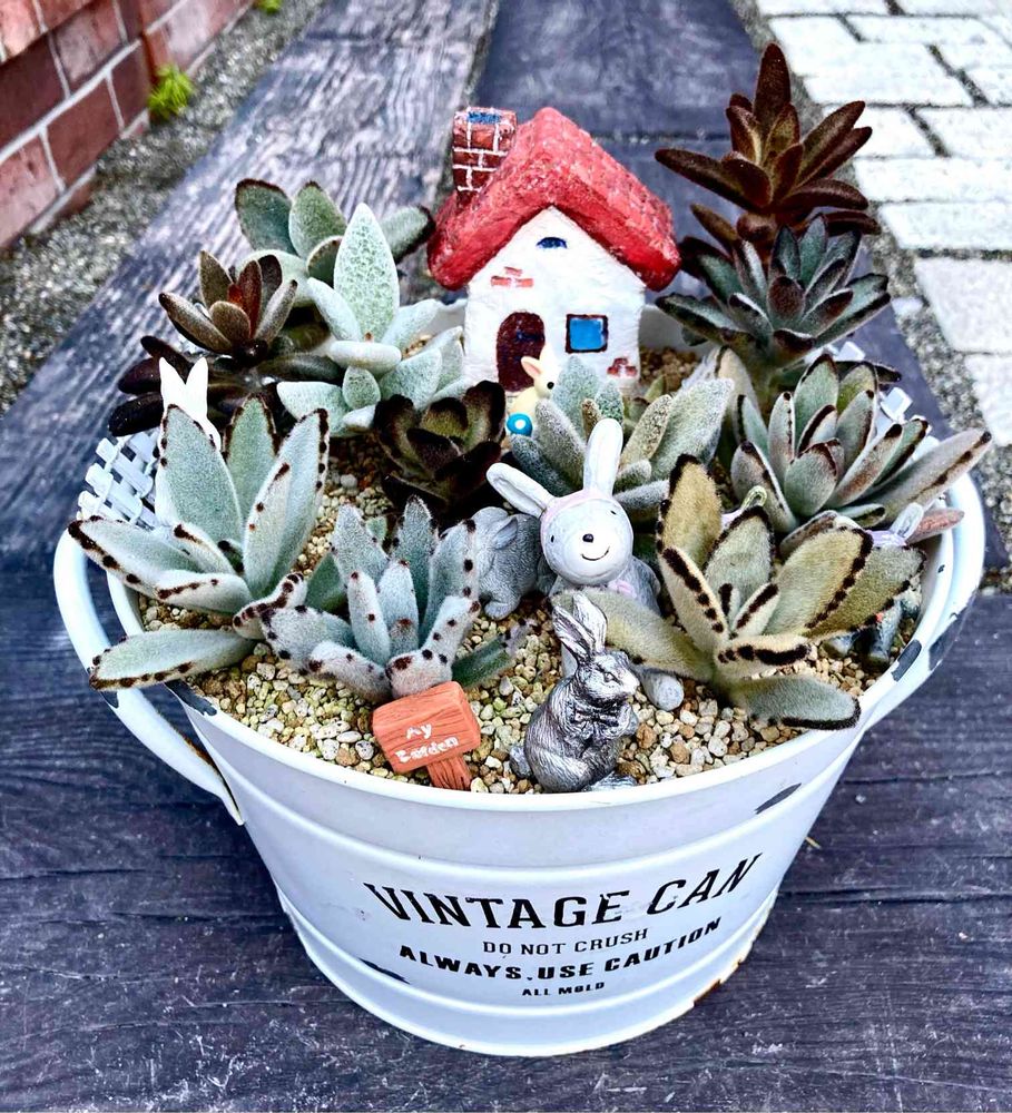 多肉たちがだいぶ大きくなってきて、フィギュアのうさぎ達が埋もれてきました😅
