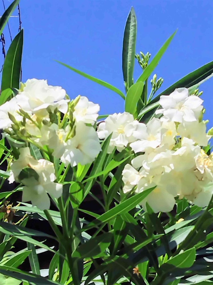 久しぶりに裏の庭に出てみたら、キョウチクトウ咲いてました💚🤍✨
