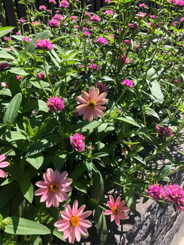PWゴンフレナ ラブラブラブ と ピンクのジニア 一面ピンクの花壇