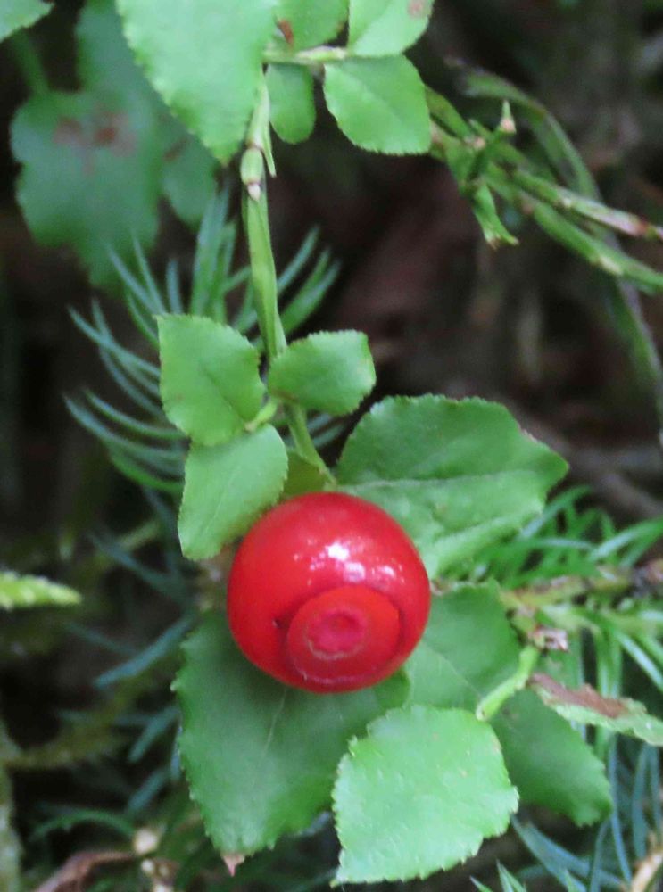 針葉樹の苔むした森の中宝石のように輝いて見えました♪