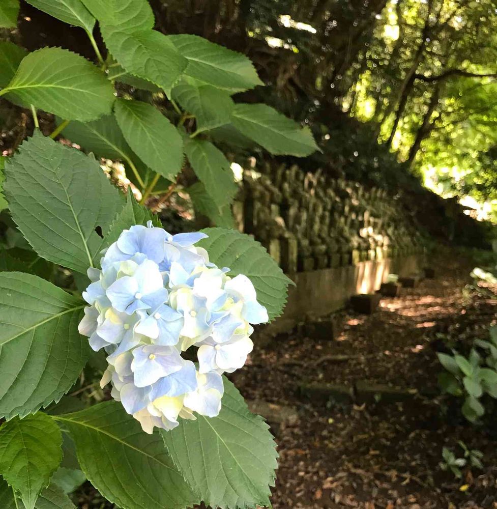 紫陽花の向こうに、石のほとけ様が並んでいらっしゃいました🙏