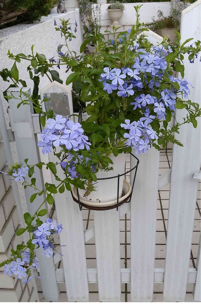 門の白色とルリマツリさんの淡い青色が素敵ですね💓