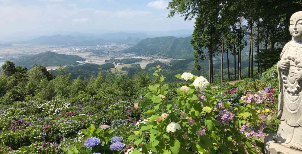 足もとからずっと下まで、紫陽花です。