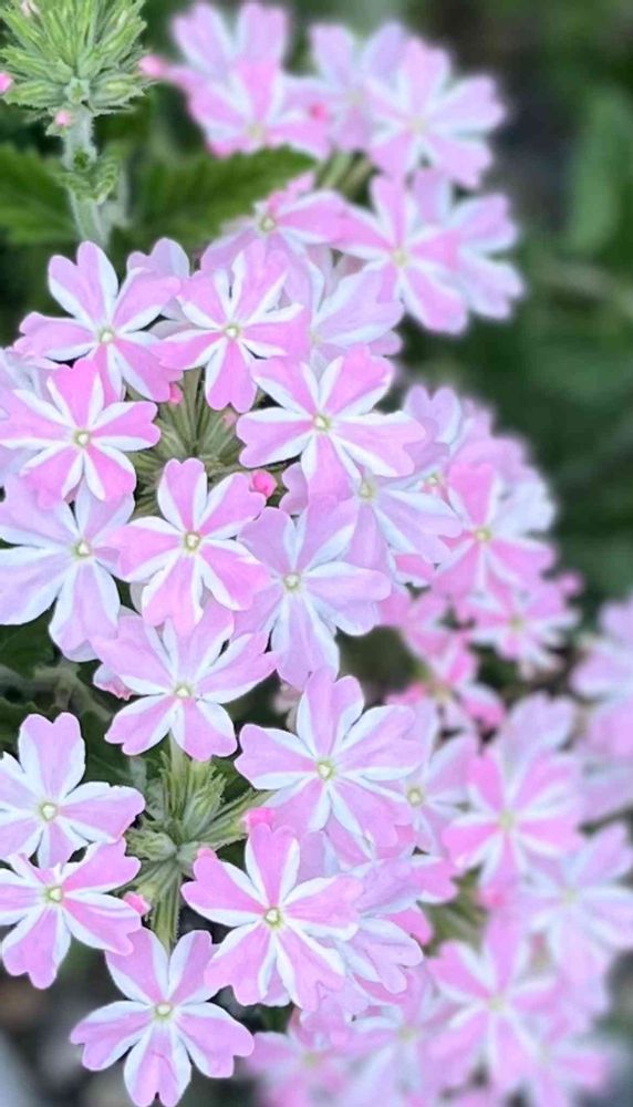 優しいピンクにホワイトの差し色が可愛いバイカラーのバーベナです。