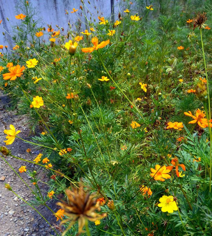 実家のキバナコスモス💛🧡💚
