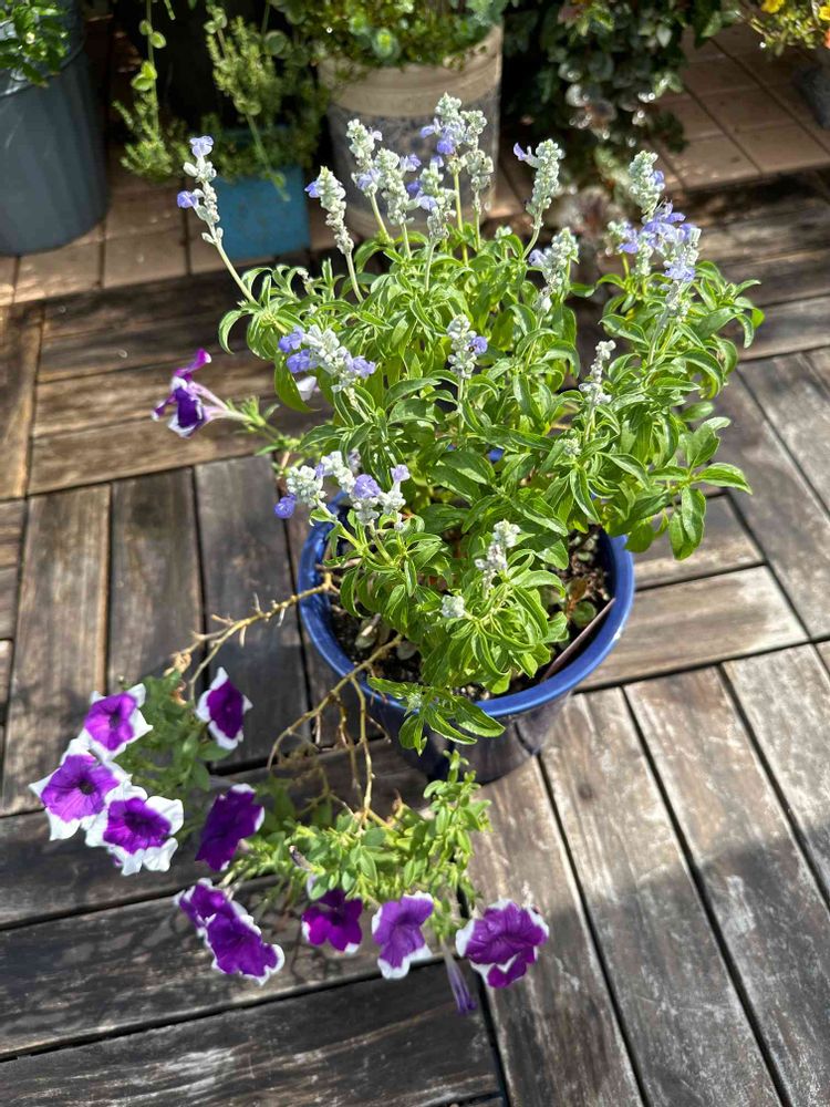 ペチュニア氷河の空の鉢に根付いてしまったサルビアさん