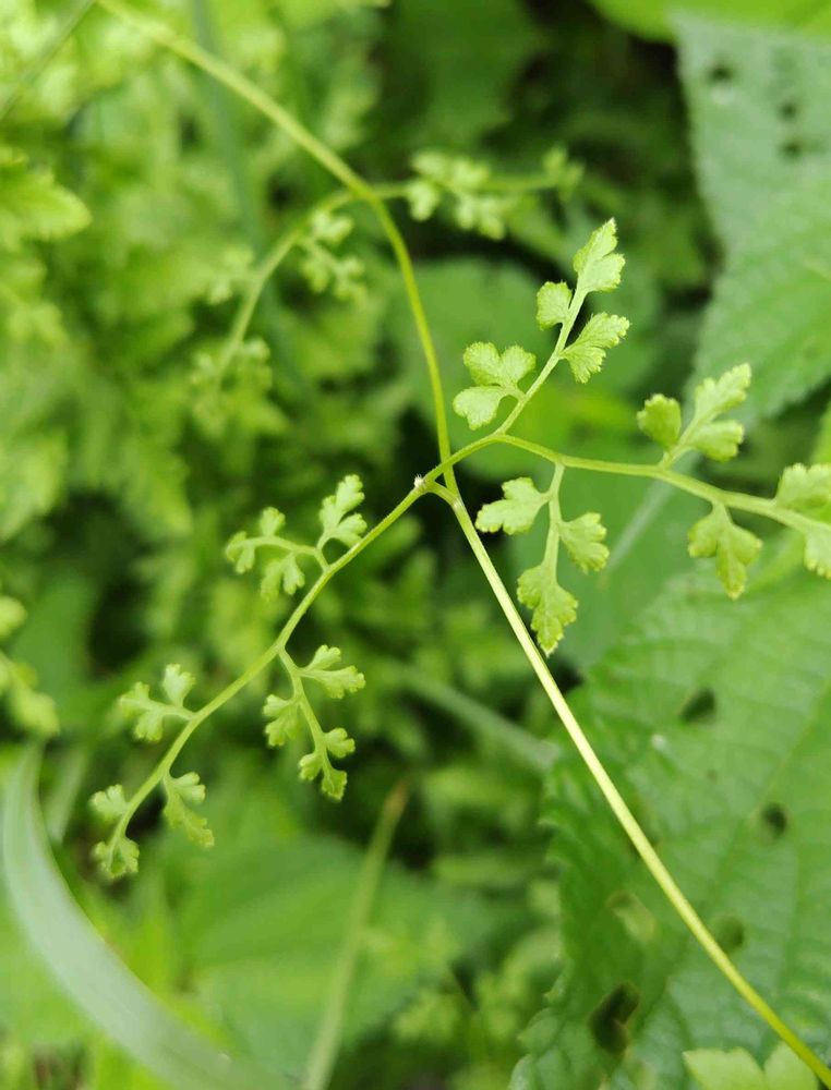 焦点が合っている植物は蔓性シダ類のカニクサ(蟹草)/ツルシノブ(蔓忍)のように見えますが,