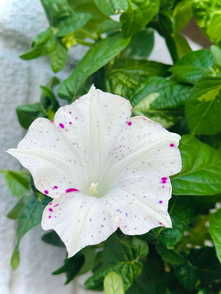 朝顔 751 青斑入桔梗渦葉白地赤吹掛絞桔梗咲