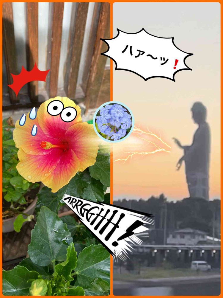 大仏様のパワ〜にハイビスカスもびっくり(@_@;)(笑)