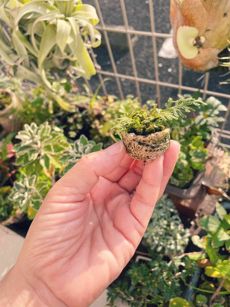 最近、山野草を始めました。旦那は盆栽、私は下草を学び始めました。 自宅で陶芸しています、豆鉢など作っています。の