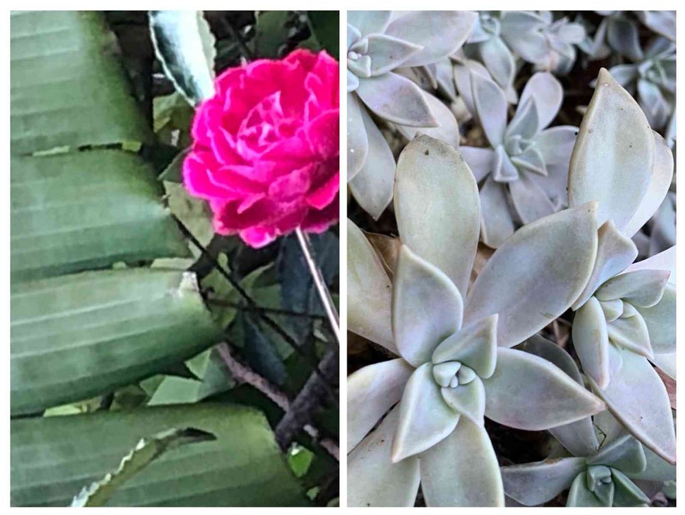 実家の朧月と、大きな芭蕉の葉と薔薇🌹