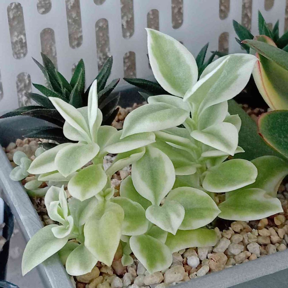 ハオルチアと寄植えして、棚の奥であまり日が当たらない場所に置いてある