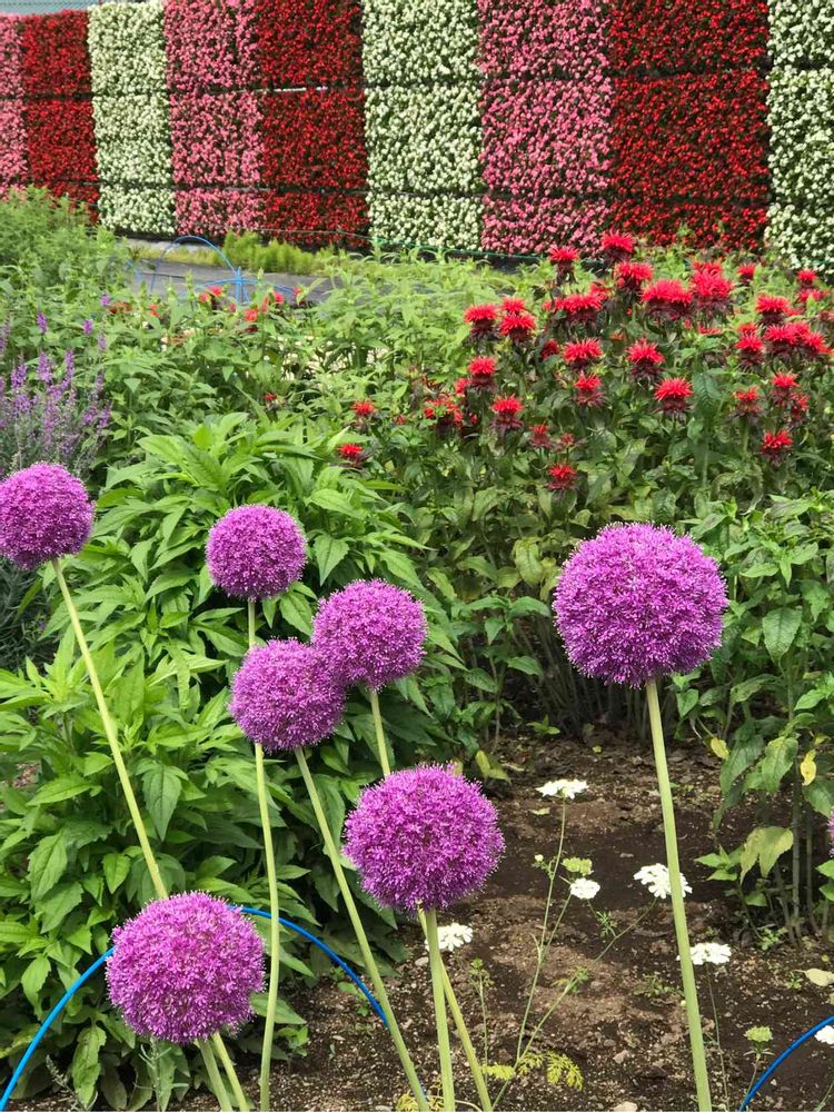 観てきましたよ♪富士山も雲間から顔を覗かせていいタイミングでしたね。湖が見えて大自然の恩恵を感じてハーブのお花に癒されて素敵ですね。アリウムの後ろのお花の壁も凄いですね。