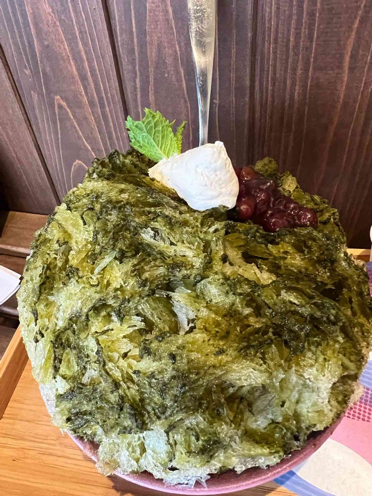 今日はここが日本一気温が高い都市じゃない?(行く先々で言う私)というのがかき氷を食べる大義名分です。抹茶味