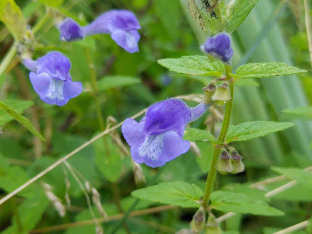 砂浜で咲いていたのでナミキソウかと思いましたが、対生の葉の付き方や尖った形、花が二個づつ付いていることから変種エゾナミキソウ(蝦夷波来草)のようです。